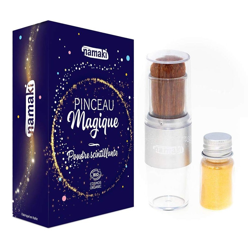 - The magic brush with its bio-certified glitter powder brings face and hair to shine not only at carnival.
