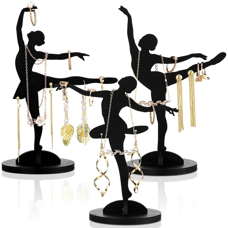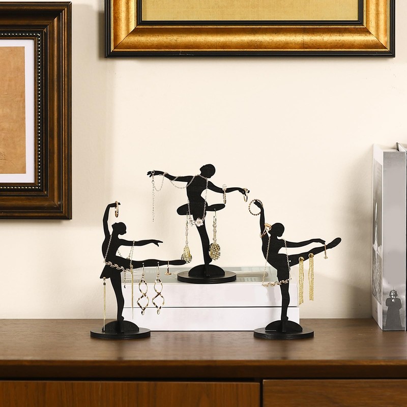 - Ballet Style Jewelry Holder: crafted with an elegant ballet inspired style, these jewelry racks make a stylish holder for your precious pieces; The set features 3 dancer stands and bases, meticulously made; These versatile pieces can hold everything from necklaces to earrings