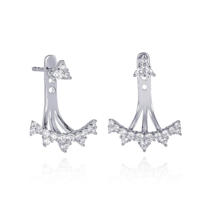 - Stylish front and back earrings in Sterling Silver. Elegant stud earrings with ear jackets in a crown shape, set with Cubic Zirconia stones