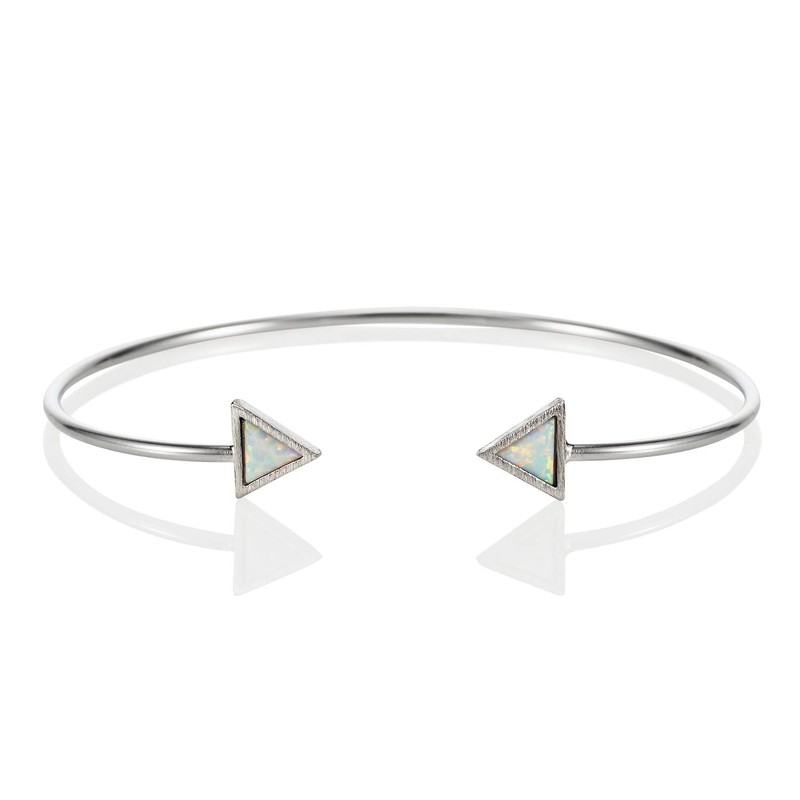 namana Triangle Opal Bangle for Women and Teen Girls, Stylish Geometric Open Bangle with Created Opals, Dainty Silver Bangle Bracelet for Women with White Opals, Jewellery for Women with Gift Box