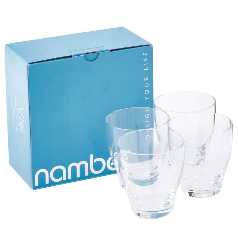 - PRODUCT SPECIFICATIONS: Package contains (1) Nambe Vie Double Old Fashioned Glasses (Set of 4). Made of Glass. Measurements: 9 oz. capacity, 3.5" D x 4" H, each. Care instructions: Dishwasher safe. Designed by Neil Cohen in 2017 for the Vie Collection.