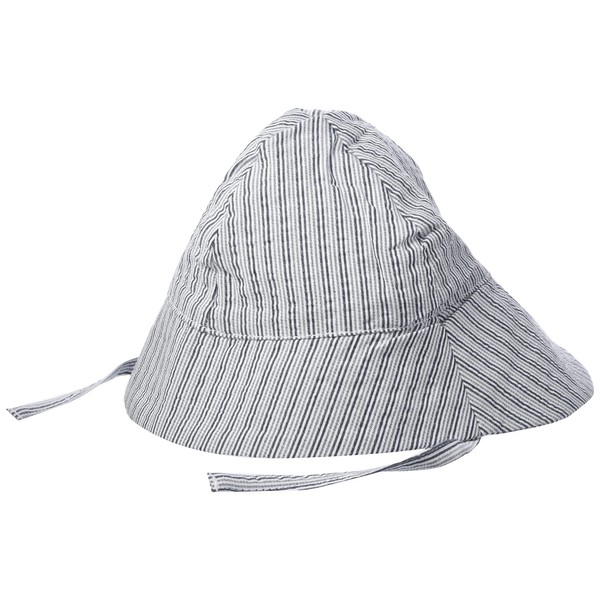 - Baby boy sun hat, solid woven fabric, wider brim, sewn-in elastic waistband and tie closure