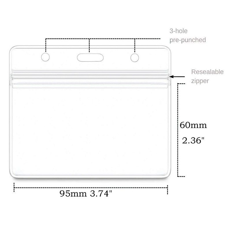 - PERFECT SIZE FOR AVERY 5390 / 05390 & THE STRONGEST AND THICKEST ID HOLDER - Card Fit Size (Inside) of HORIZONTAL ID Holder is 2.4"(height) x 3.75"(length), Compatible with Avery Name Badge Inserts 5390 / 05390 (2-1/4 x 3-1/2 Inches). Comfortably fit 3 credit-cards or driver's license. The thickness of our ID holders is 0.30mm. It is strongest and thickest in Amazon.