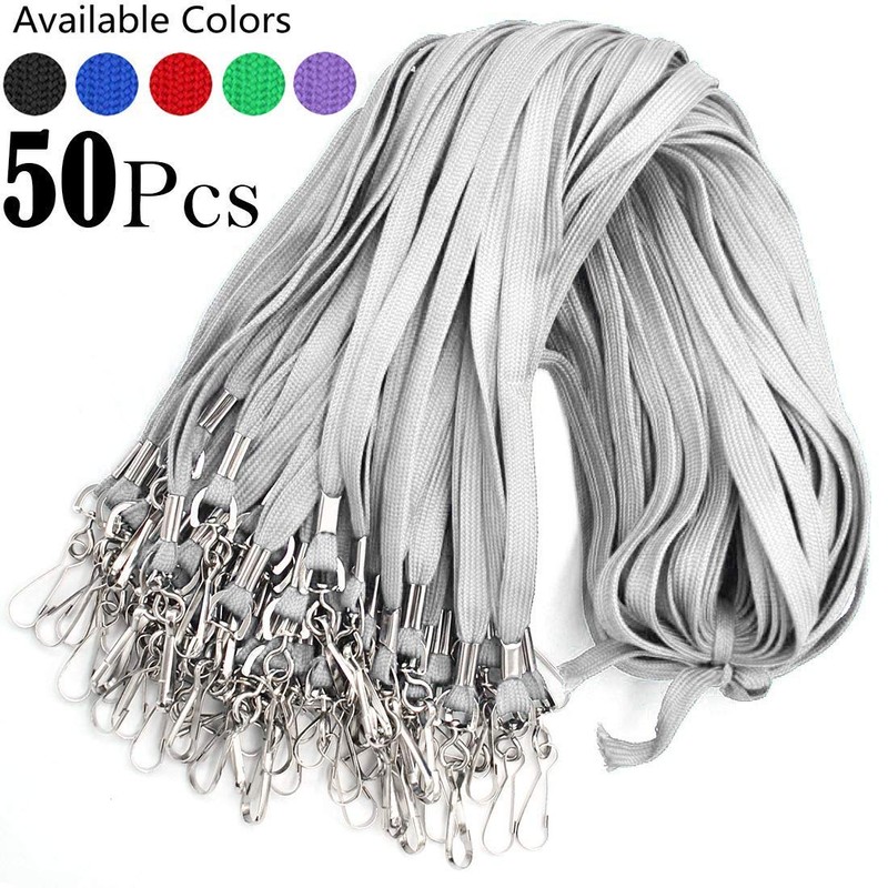 Name Tags Gray Lanyards/Badge Holder Pairs Woven Round Lanyard & Horizontal Sealable Waterproof Clear Plastic ID Card Lanyards with id Holder Name Badges (Gray, 50 Pack)