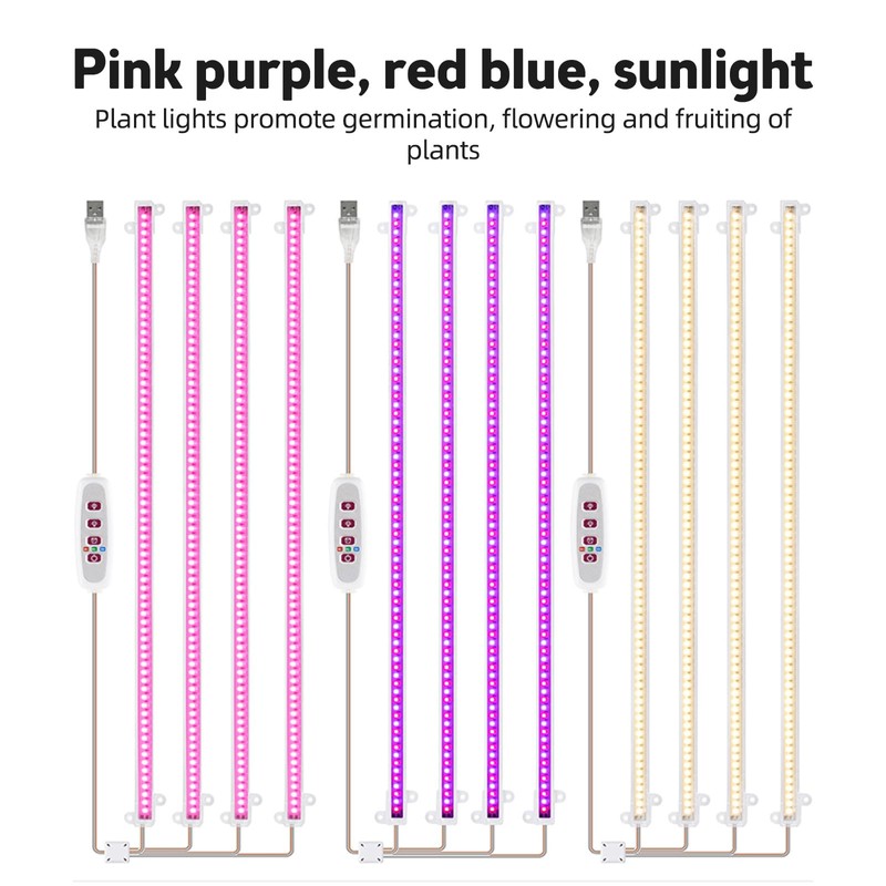 Namolit LED Plant Grow Light Strips 8W 168LED 82.6lm Bright Grow Lamp with 8H/12H/16H Timer 5 Dimmable Brightness Growth Light for Green House Hydroponics Succulent 4 Bars Pink Light 4 Bars