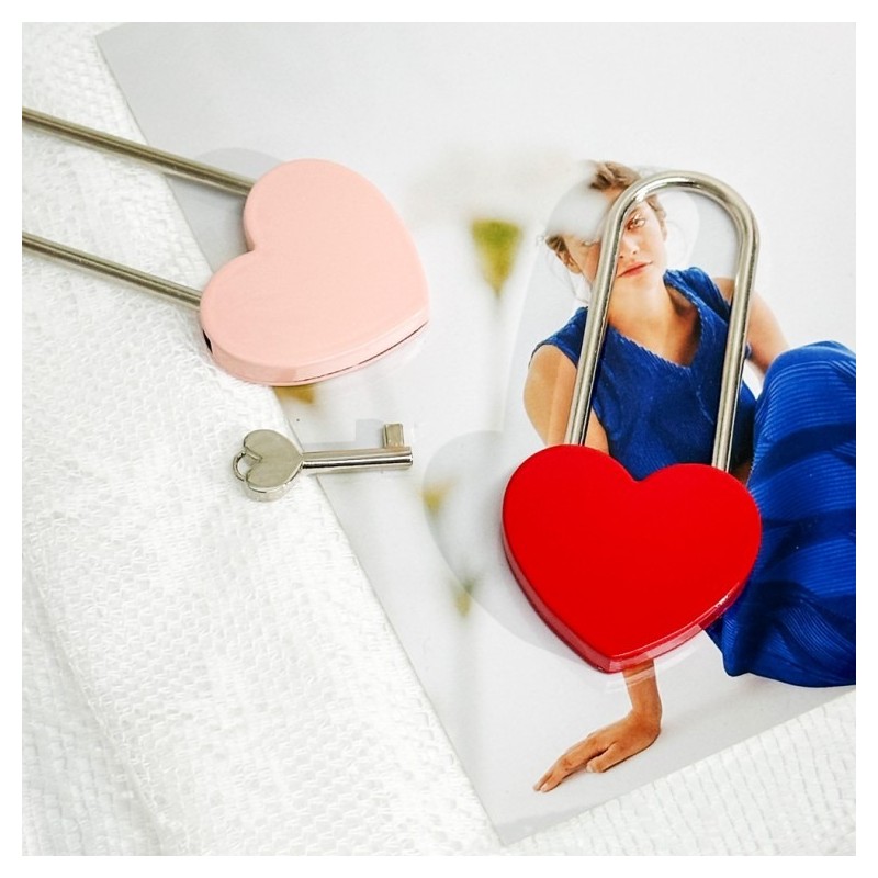 - Feature One: A heart-shaped lock in vibrant red or refreshing pink. Made from durable zinc alloy, it's resistant to strong impacts. Its large size with a long shackle makes it even more convenient to use.