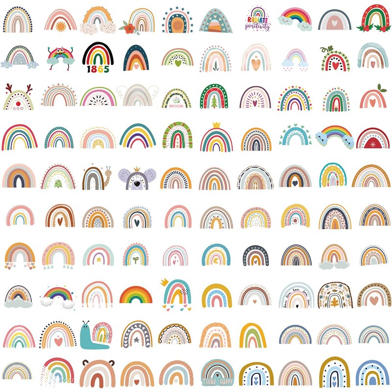 Namvo 100 Pieces Rainbow Stickers Bohemian Style Waterproof Cartoon Stickers for Luggage Helmet Computer Notebook Phone