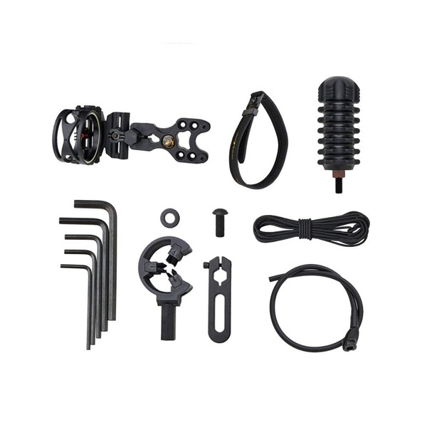 The Bow Accessory Kit match 3 pin sight, aluminum alloy material, adjustable up and down, left and right, with a sight light, has high accuracy.