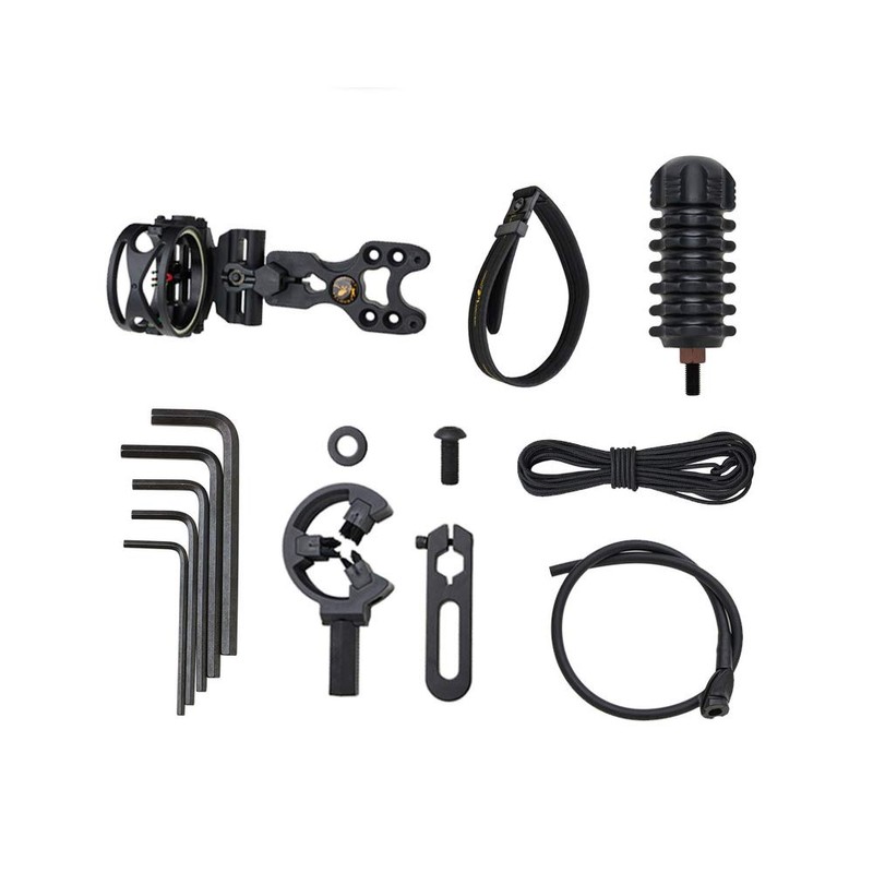 The Archery Accessories kit included: 3 pin bow sight, arrow rest, rubber damper, hand strap, shoot sight, D‑line, wrench.