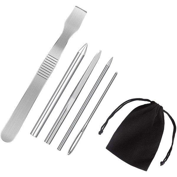 Namvo Pack of 5 Stainless Steel Paracord Needles with Fabric Bag - FID Needle, Sewing Needle and Smoothing Tool for DIY Craft Bracelets, Sewing Web Shoelaces, Cords