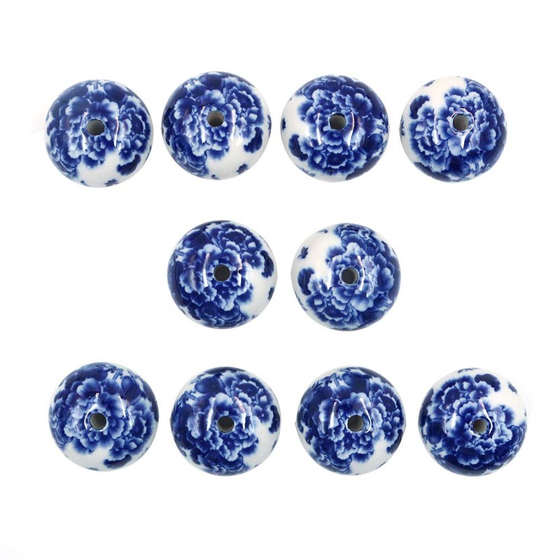Namvo10 Pieces Modern European Wind Knobs Floral Hand Painted Ceramic Ball Shape Cupboard Wardrobe Cabinet Drawer Door Handles Pulls Knob, Blue and White Flower