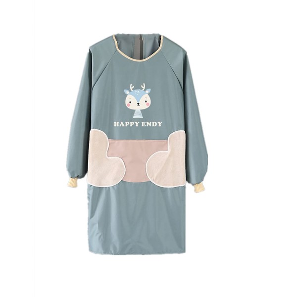 NAN Wind Women Kitchen Apron with Big Pockets,Long Sleeves Waterproof Apron for Cooking Baking Cleaning Work