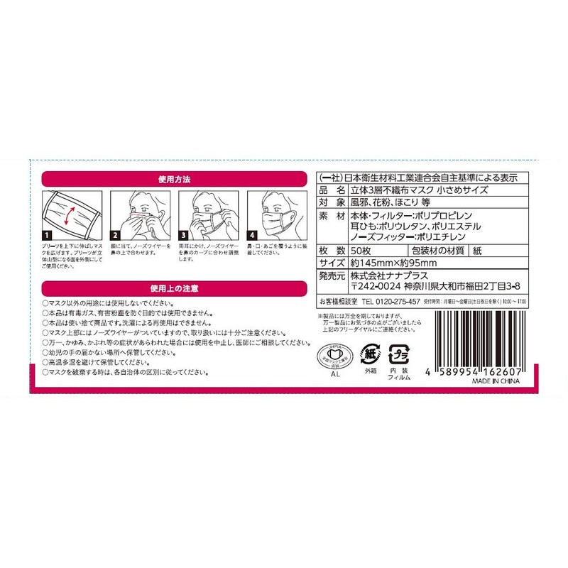 Nana 3D 3-Layer Non-woven Mask, Small Size, Pack of 50