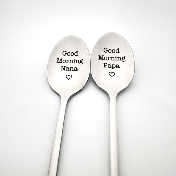 - GRANDMA AND GRANDPA GIFTS: Best Mother’s Day, Father’s Day and Christmas gift -Good Morning Nana and Papa Spoon Set. It is a perfect gift for grandma grandpa on the Christmas, Birthday, Thanksgiving Day, Wedding Anniversary, Valentines Day, New Year Day or just because.