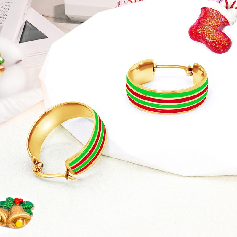Nanafast Christmas Earrings Stainless Steel Christmas Hoop Earrings for Women Xmas Red Green Hoop Earrings for Holiday-Gold Red&Green