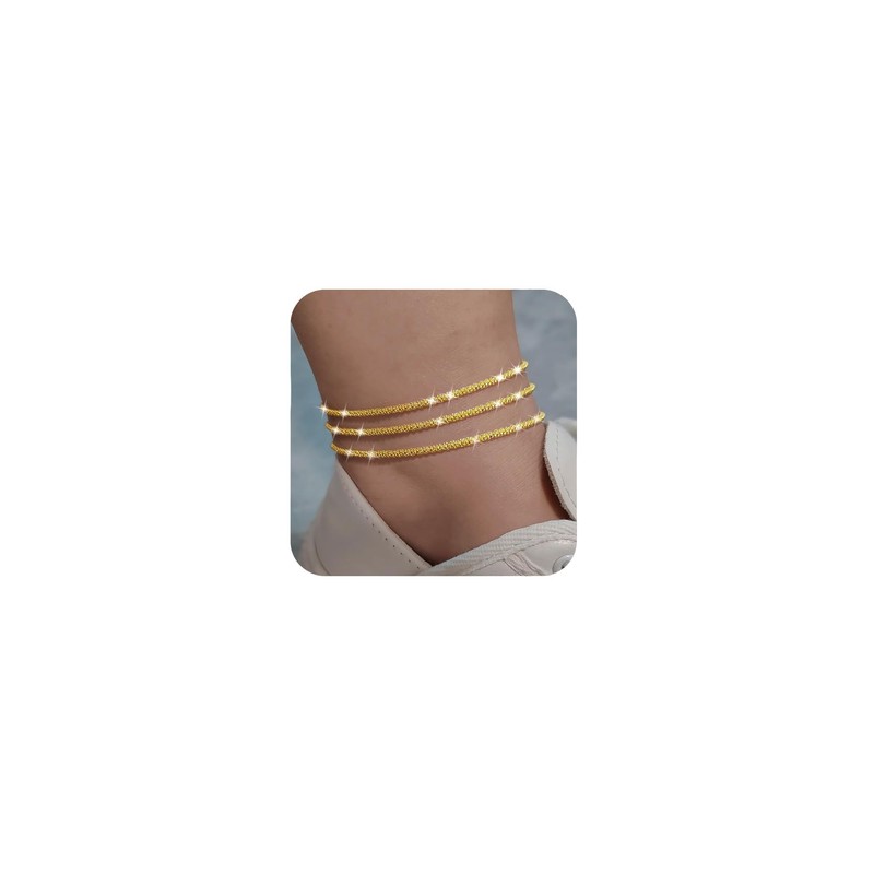 Nanafast Women's Ankle Bracelets, Sparkling Multi-layer Anklet Bracelets for Women, Adjustable Shiny Gold/Silver Anklets for Women, Beach Cute Anklets Jewelry for Summer-3layersGold