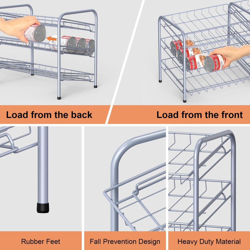 - 【EASY TO ASSEMBLE】: This can rack organizer comes with Rubber foot pads, It can prevent it from sliding or scratching the surface. Easy to install without tools.