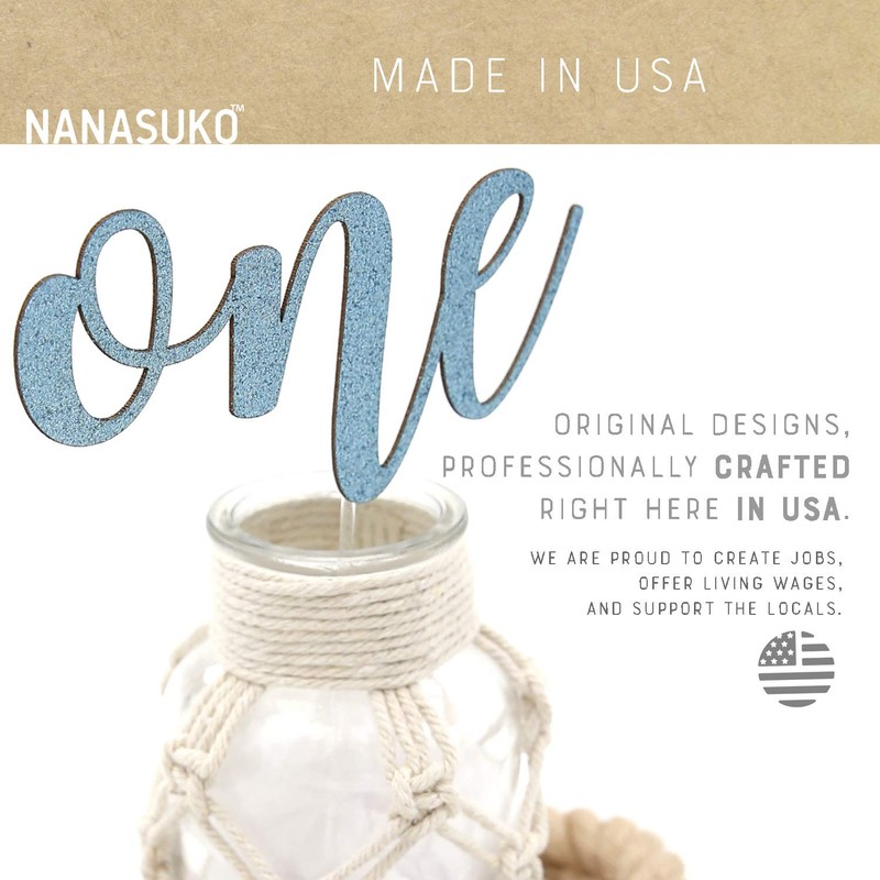 NANASUKO 1st Birthday Cake Topper - one - Double Sided Baby Blue Glitter - Premium Quality Made in USA
