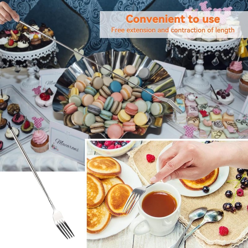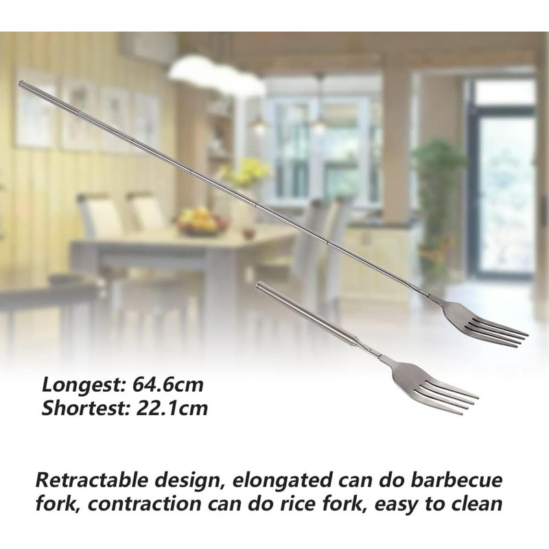 • Creative Design: Manufactured by blunt fork tines, sharp and rounded, the telescopic dinner fork is easy to pick up food; Retractable design, the longest 64.6cm/25.4", the shortest 22.1cm/8.7'', makes this stainless steel dinner fork elongated to be a barbecue fork, and contraction to be a normal rice fork, easy to clean and maintain.