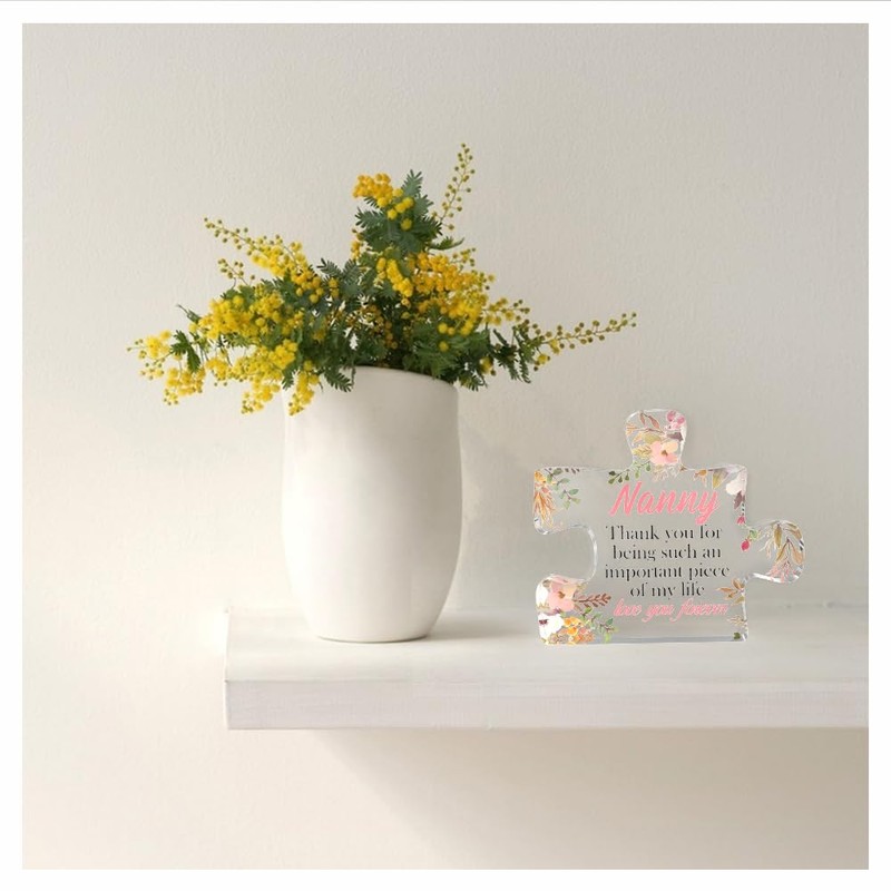 - Nanny Mothers Day Gifts: The acrylic block puzzle is engraved with "Nanny Thank you for being such an important piece of my life love you forever". The acrylic gift can be used as a gift to express your love to your Nanny, give your Nanny this sweet gift that will melt her heart as nanny gifts from granddaughter