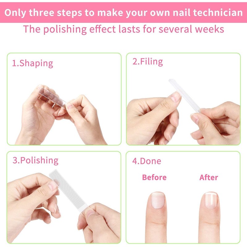 - FUNCTION: glass nail files are well-polished, 3 mins make your nails shine as like your nails with coat nail polish.