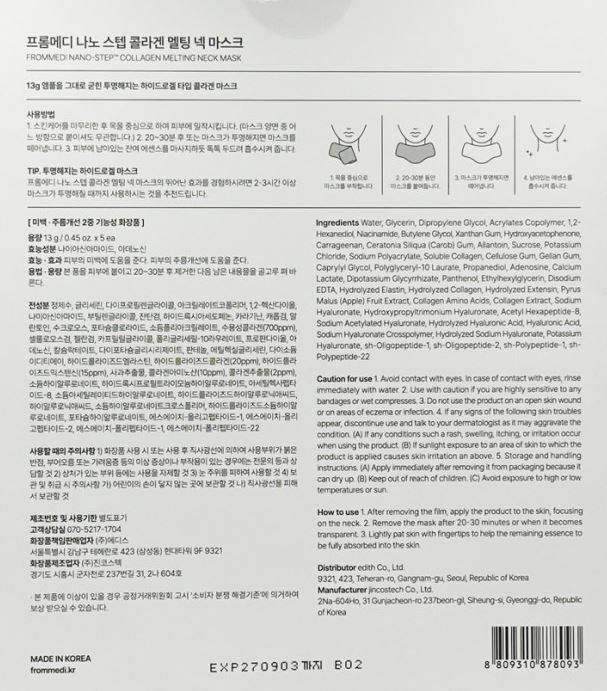 Nano Step Collagen Melting Neck Mask 2 boxes (10 sheets total) Frommedi Neck Mask Pack / 나노 스텝 콜라겐 멜팅 넥 마스크 2박스 총 10매 프롬메디 넥마스크팩