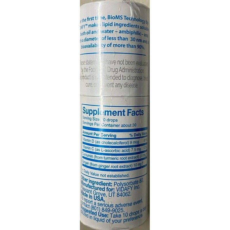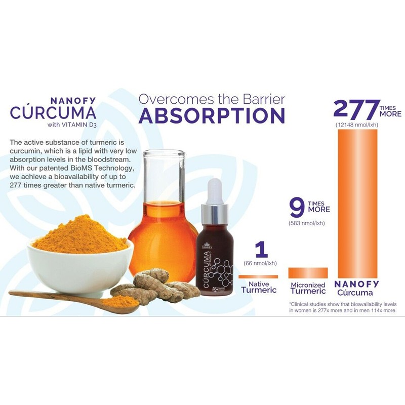Nanofy Curcumin with Ginger, Vitamins C and D3, Powerful anti-inflammation and anti-oxidant . Condition is New. Shipped with USPS First Class Package. This product is a supplement and is not a medicine, consult physician prior to consuming. Greater bio-availability, 185 times more (18,500%) absorbed by organism. One single dose equivalent to 50 tables of native Turmeric. 100% water soluble and stable pH for better absorption. Its benefits remain in organism longer than 24 hours. For more information click on this link: http://www.vidafy.info//link/store/12103 |