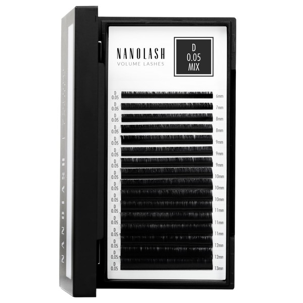 Nanolash Eyelash Extensions for Volume Technique, Eyelashes for Professional Extension (0.05 D, Mix 6-13 mm)