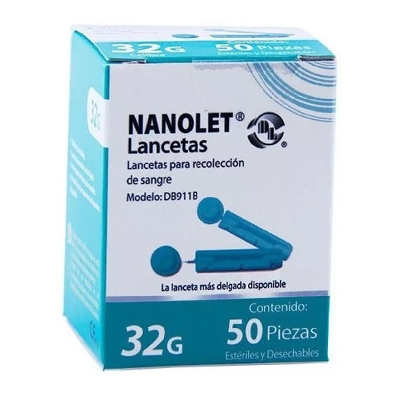 - Las lancetas NANOLET DL están destinadas para la Recolección de Sangre, son portátiles, desechables y son esterilizadas por rayos gamma. Se ofrecen en presentación de caja con 50 piezas, calibre 32G, siendo la lanceta más delgada que existe, su color es verde oscuro.