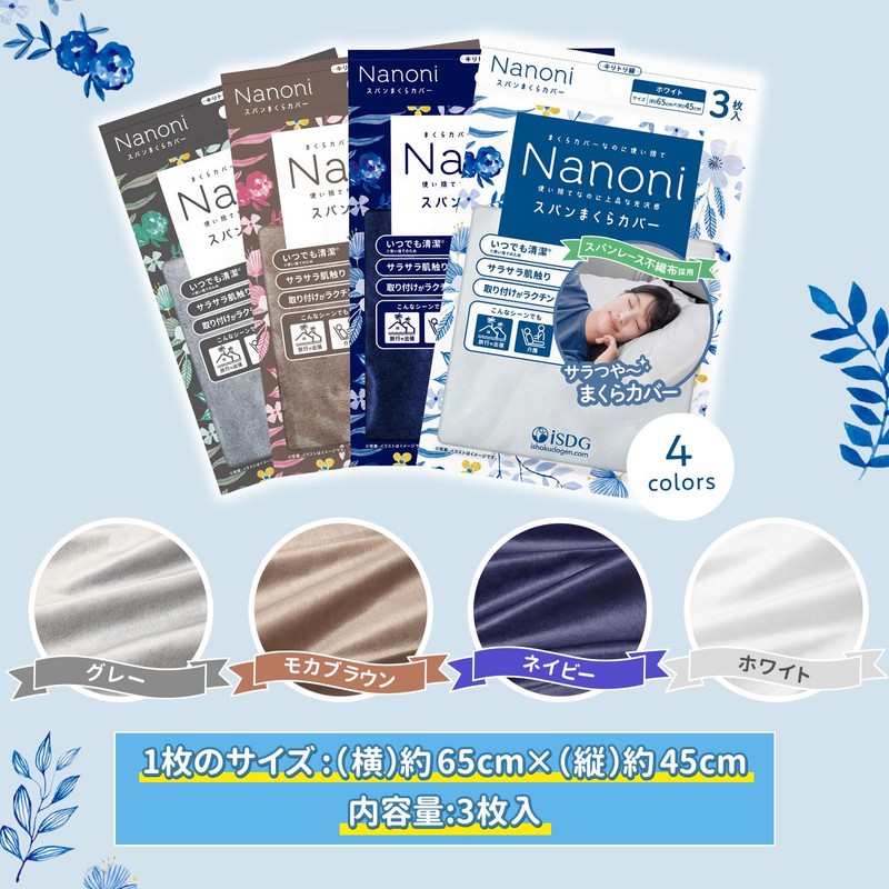 Nanoni iSDG Span Pillow Cover, Navy, 17.7 x 25.6 inches (45 x 65 cm), Set of 3, ISDG Medical Source Dot Com, Spunlace, Disposable, Hygienic