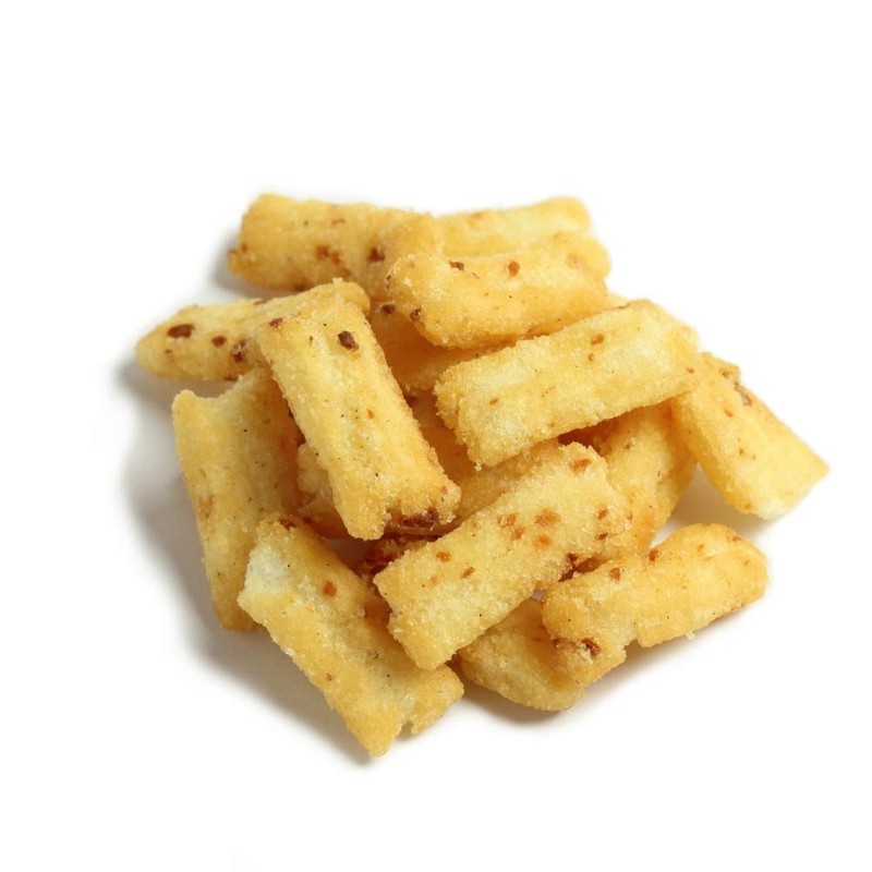 - Ingredients: Vegetable oils (made in Japan), starch, rice (made in Japan, from Thailand), corn, peanut, salt, glucose fructose syrup, powdered sugar, chili pepper, protein hydrolyzes/processed starch, seasoning (amino acids, etc.) (some may contain peanut and soy)