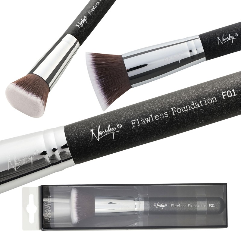 - The Nanshy Handle – The easy-to-hold & use handle is made of natural wood & has at least 7 coats of waterproof pearl paint. This liquid foundation brush is built to last.