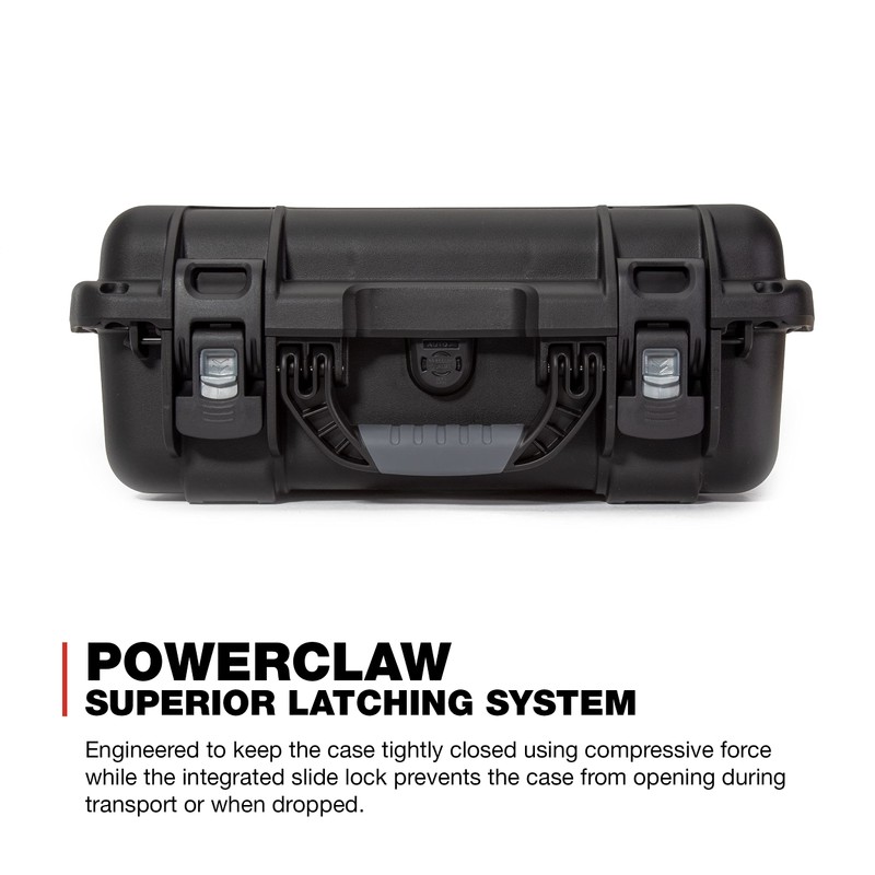 - POWERCLAW LATCHING SYSTEM: The PowerClaw latching system (US Patent No. 8,297,464) used on all NANUK cases is engineered to keep your case closed during the toughest of missions. The PowerClaw clamps the case tightly closed using compressive force while the integrated slide lock prevents the case from opening during transport or when dropped. The super tough nylon construction ensures your precious items remain safely inside the case no matter where the journey takes you.