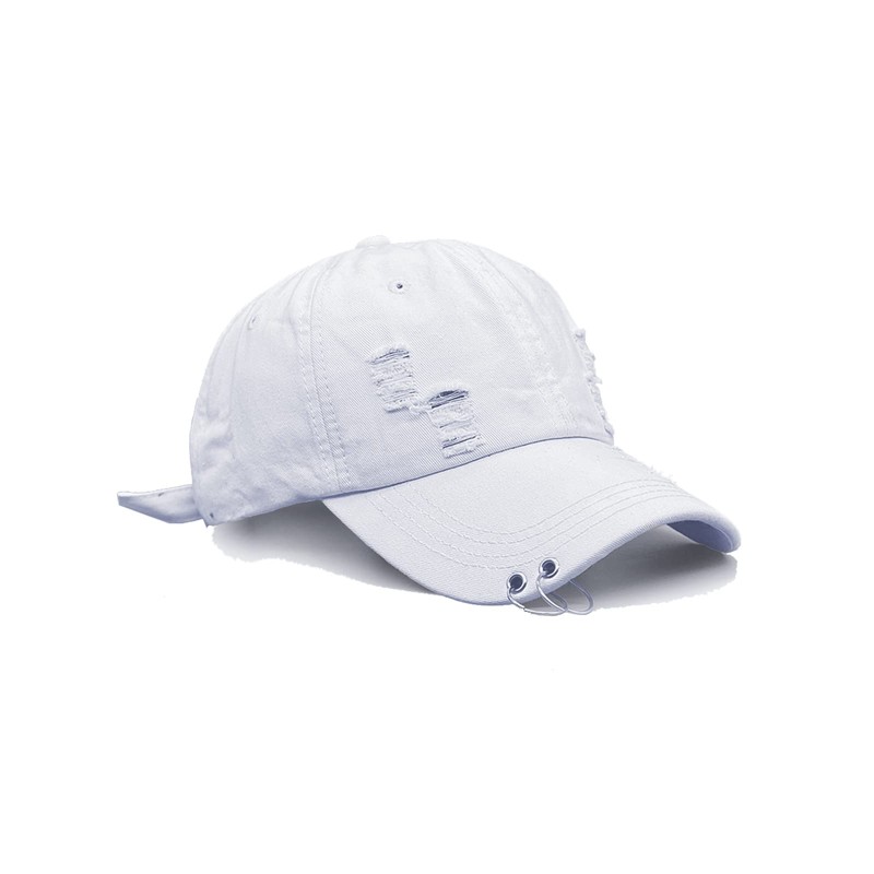Nanwansu Unisex Ripped Distressed Denim Ring Baseball Cap Hip Hop Vintage Dad Hat Adjustable White