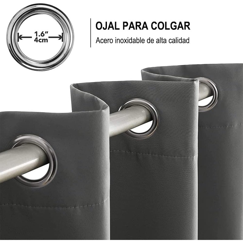 - LISTO PARA USAR: Las cortinas blackout incluyen 1 paneles y panel mide 132 x 213.3cm. Las cortinas con ojales (diámetro interior del ojal de 4cm) son más fáciles de colgar, deslizar y desmontar. Equipado con 1 corbata, conveniente para atar cortinas para ahorrar espacio. (AVISO: Mida primero el tamaño de su ventana al comprar)