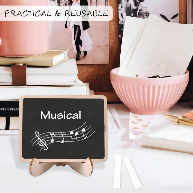 - MULTIPURPOSE CHALKBAORD SIGNS: The wooden mini blackboard fit perfectly on any kind of parties, such as weddings, birthdays, and Christmas , but also add rustic DIY feeling to your decoration as a place name and message board , can be used as table number board, place card, favor tag, plant decorative sign, food labels, food name card and events, office, kitchen, name tags, mini food menu board.