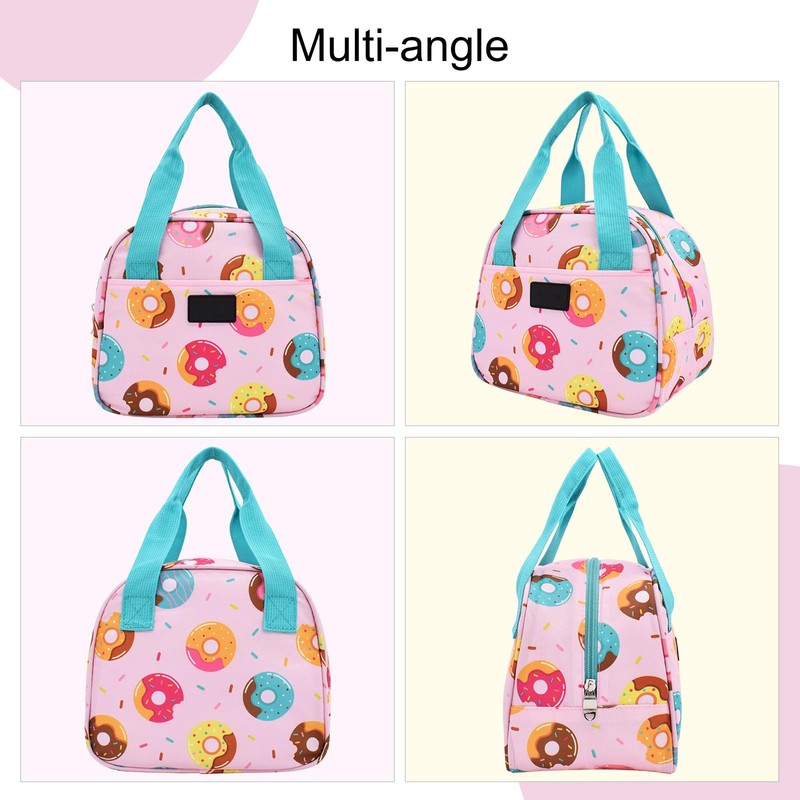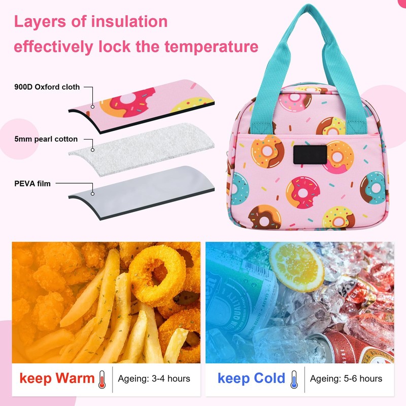 - Easy to clean - The wide top opening makes the lunch bag easy to pack, unpack and wipe clean. This waterproof lunch bag is easy to clean because the lining is smooth. The lining of the cute lunch box is made of PEVA material, you can wipe the lunch bag with the tissue or you can rinse it directly with water, dry it so you can use it again.