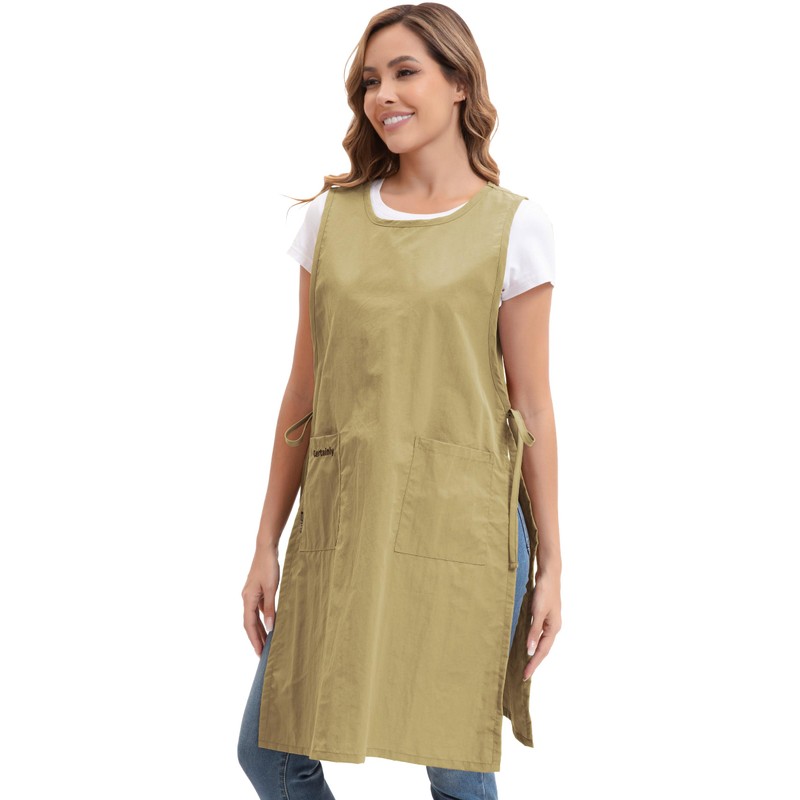 - Design Structure: The apron features a two-piece design for the front and back, providing a better fit and facilitating ease of movement. The ties on both sides allow users to adjust the fit according to their body shape, accommodating various body types comfortably, whether slim or more robust.
