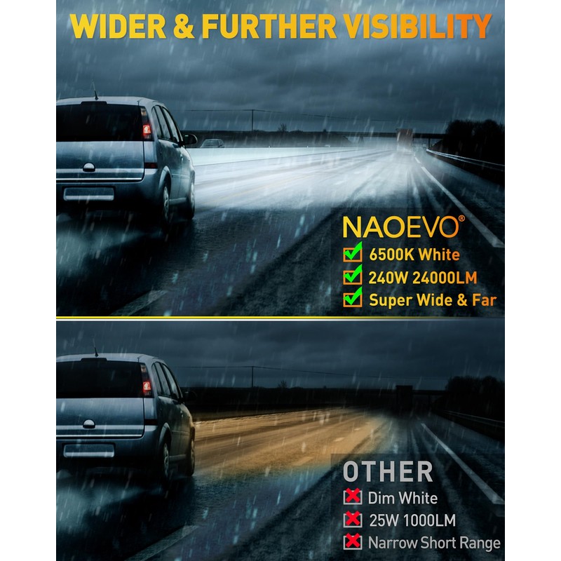 - [High Brightness LED Light Bars] - NAOEVO 4-inch 4pcs light bar uses a total of 80 high-end SMD3030 LED chips (20pcs in each), achieving lighting effects of 240W/24000LM. Its bright and powerful 6500K white light easily defeats the darkness in front of you, ensuring you drive safely and efficiently!