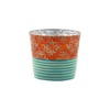 - Add a touch of charm to your space with this vibrant flower pot adorned with a geometric design