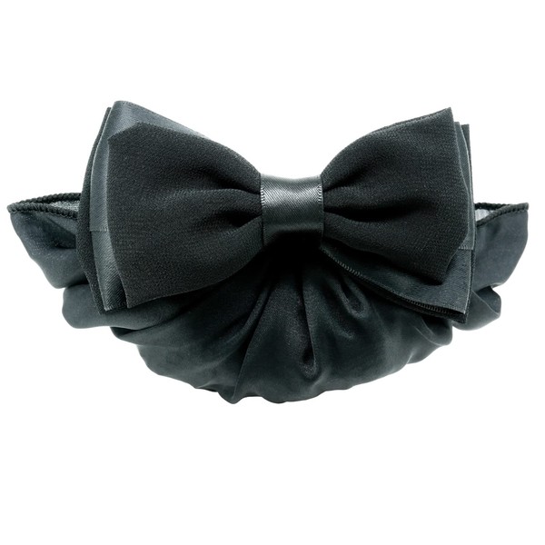 - (Bun Net) The chiffon fabric cover wraps around the net, giving you an elegant shape. The bun portion is not visible through and the net is stretchy, so you can create beautiful bundles regardless of the length of your hair or volume. The hair bundled in the back is stored inside the barrette net for a clean look. The ribbon has a high design and is cute even if worn on black hair. A simple barrette with a net that can be used by people of all ages