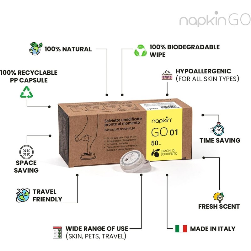 Napkin Creho Lemon Cleaning Wipes Wet In Capsule White Viscose 4.2 x 4.2 x 1.5 cm (Pack of 50)