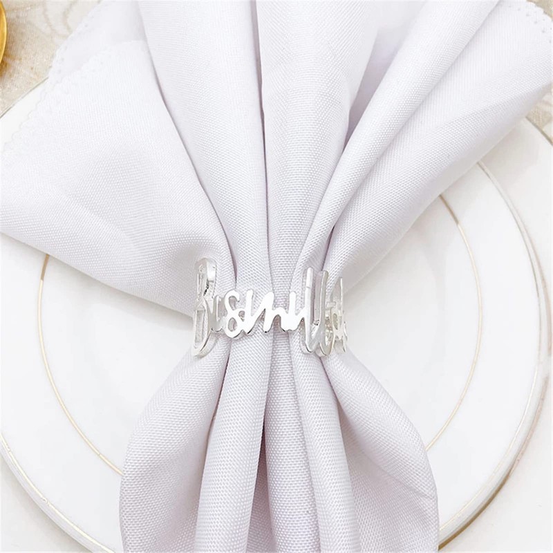 Napkin Rings – 6 Pieces Bismillah Letter Metal Napkin Ring Set, Alphabet Napkin Buckles Holder Table Decoration for Wedding, Party, Ramadan, Banquet (Silver)