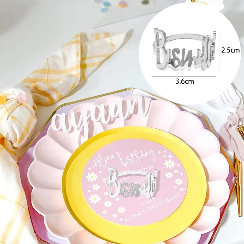 Napkin Rings – 6 Pieces Bismillah Letter Metal Napkin Ring Set, Alphabet Napkin Buckles Holder Table Decoration for Wedding, Party, Ramadan, Banquet (Silver)