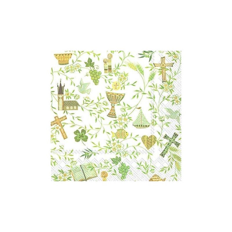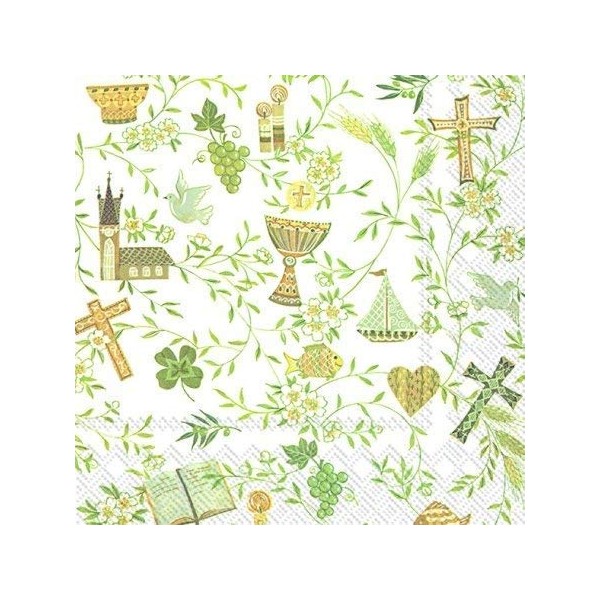 Napkin Serviette Your Christening Confirmation Communion Design White Gold 33 x 33 cm 20 per pack