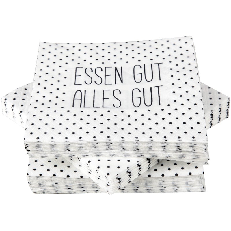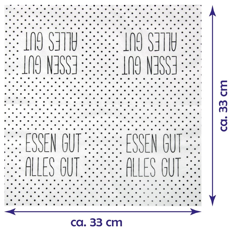 - Box contents: pack of 100 high-quality paper napkins (1/4 fold, 3-ply), in selected motif: Essen gut, alles gut