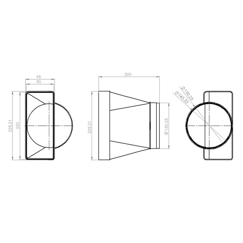 NaplesUK 220mm x 90mm Megaduct Flat Channel Ducting to 150mm Straight Round Connector - White Plastic
