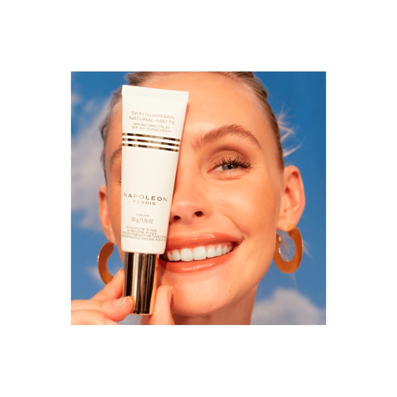 Napoleon Perdis Skin Guardian Natural-Matte Broad Spectrum SPF50+ Sunscreen is a lightweight, natural-matte finish sunscreen that shields against UVA and UVB rays while being worn under makeup.