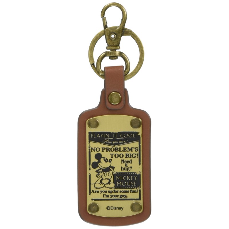 ナポレックス(Napolex) キーホルダー メタルプレート 本革調 刻印 英文プリント カーアクセサリー カー用品 ディズニー ミッキーマウス WDー332