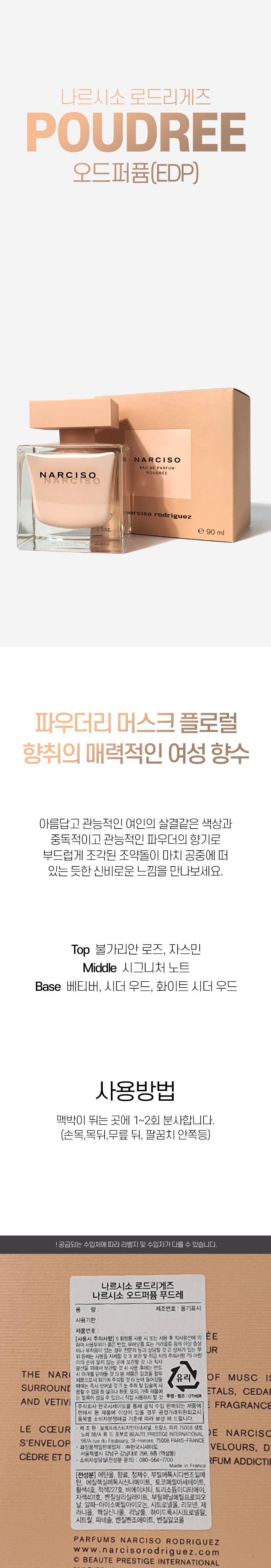 Narciso Perfume Rodriguez Poudre EDP 50ml + Perfume Empty Bottle / 나르시소 향수 로드리게즈 푸드레 EDP 50ml + 향수공병